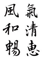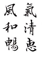 王献之が従来の型を破って新機軸を出すことに意をもちい、才腕またこれに伴うもののあったことを窺うに難くない。すなわち行草の外に一門を開き、行でもなく草でもないものを書き始めた。これが世にいうところの破体で、これは書体の名でなく、寧ろ心の赴くままに筆にまかせて、行草混淆自由に書いたものを称したと見るぺきであろう。すなわちそこに王献之の書の父にもました自由奔放と、縦横の才気とが見られるのである。