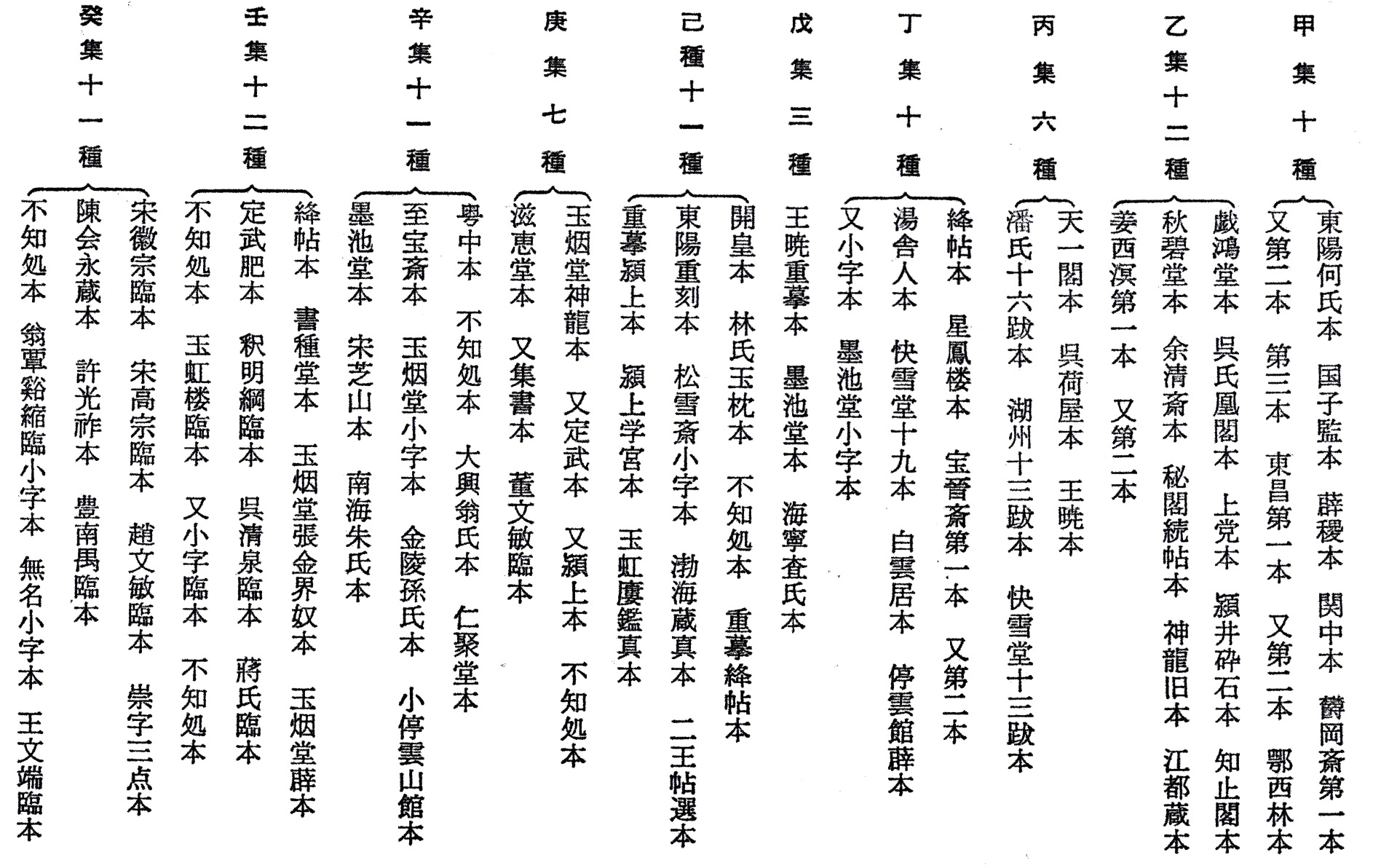 東書堂集古法帖 停雲館法帖 来禽館法帖 余清斎法帖 戯鴻堂法帖 墨池堂選帖 鬱岡斎墨宝 玉煙堂法帖 渤海蔵真