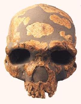 | 今から26万年前の若い成人女性のもの。金牛山人の頭骨は大きく、脳容量は1260t。早期サピエンスの発達特徴を有し、また北京原人の原始的特徴も備え、原人から早期サピエンスへ進化する中間過程の類型を代表しています。 |