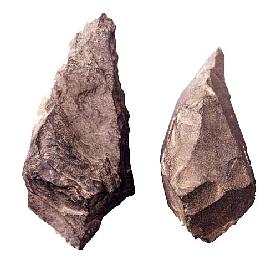 尖状器は石英剥片の一端を加工し鋭く尖らせています。