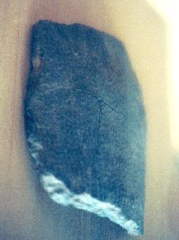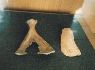 | この卜骨はヒツジの肩胛骨です。夏代の卜骨はたいてい加工されていません。 |