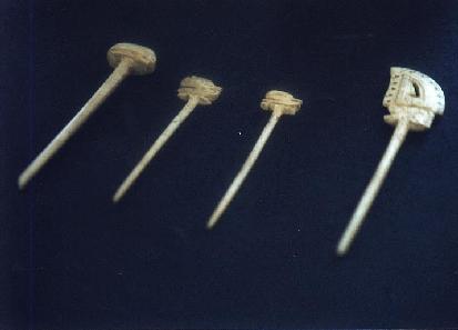 笄とは、髪をかきあげるために用いた細長い箸(ハシ)状の道具です。 |