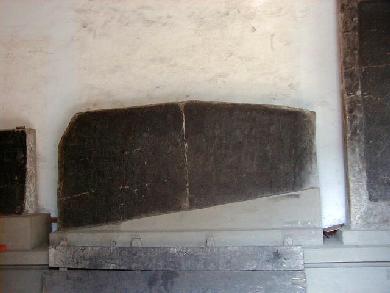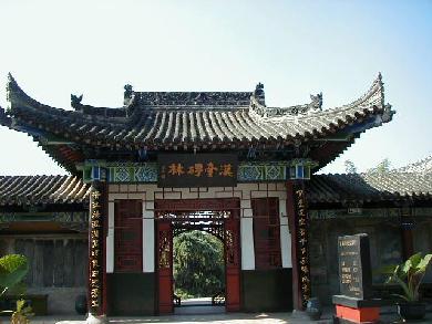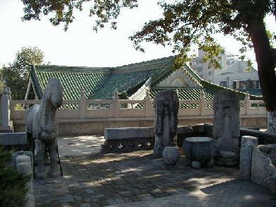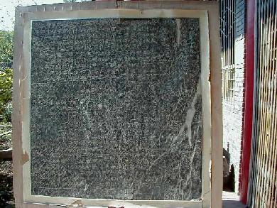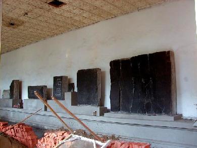 劉邦が建てた宮殿跡と伝えられる漢台は、高さ9m、面積4万u。その中に漢中市博物館があります。石門十三品陳列館は現在修復中で、すべての石刻をアクリル板で囲むそうです。石刻は墨で真っ黒に塗られていましたが、幸いにも直に見ることが出来ました。 館長の張寳徳先生が不在で撮影の許可が下りませんでしたが、以前私が「紀念≪石門頌≫刻1850年中日書法作品展」に出品したことから、室外からの撮影は許可されました。