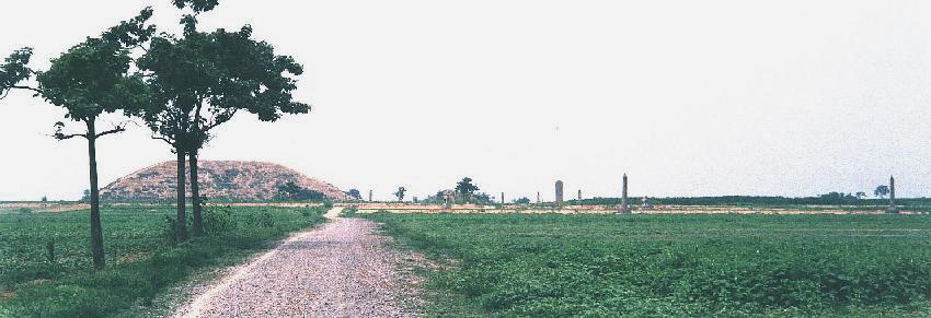 唐の高宗の太子で、則天武后の長子、李弘の陵墓で、「太子塚」と呼ばれています。李弘は、字は宣慈、高宗の第5子です。顕慶元年(656)正月に皇太子となりましたが、則天武后と政見が合いませんでした。上元2年(675)4月、24歳で服毒死に応じました。そして孝敬皇帝と諡されました。