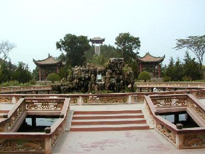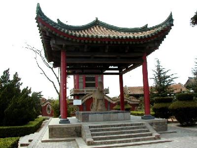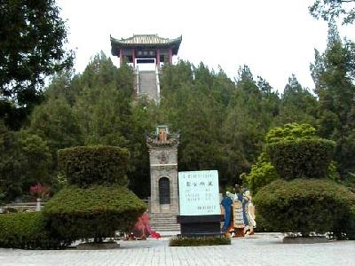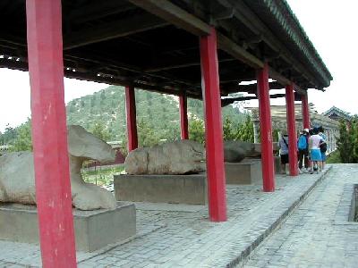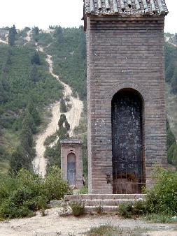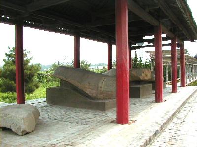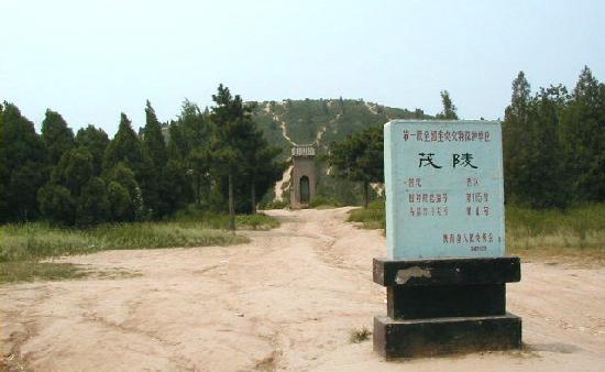 西安市郊外約40qの興平県渭北丘陵にある、漢の武帝・劉徹の墓です。陵墓は方形で、高さ46.5m、底部は東西231m、南北234mあります。この付近には前漢期の皇帝陵が9つありますが、大きさは、前漢最盛期の武帝だけあって、茂陵が最大です。 茂陵の東方には漢の名将、衛青、霍去病、重臣・金日碑らの墓があり、西には武帝の愛妃李夫人の英陵があります。