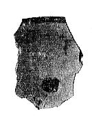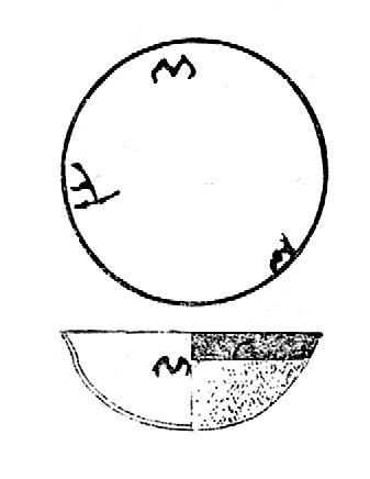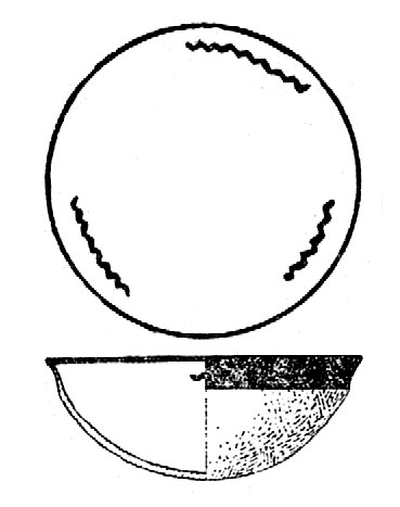 土器は手製で、肉が比較的薄く、内側に削り取った痕があります。桔黄色・磚紅色で内壁は灰色で、まれに黒色もみられます。紋飾りは刻紋が主、次いで縄紋です。紅色寛帯紋を施した丸底彩陶鉢も出土しました。