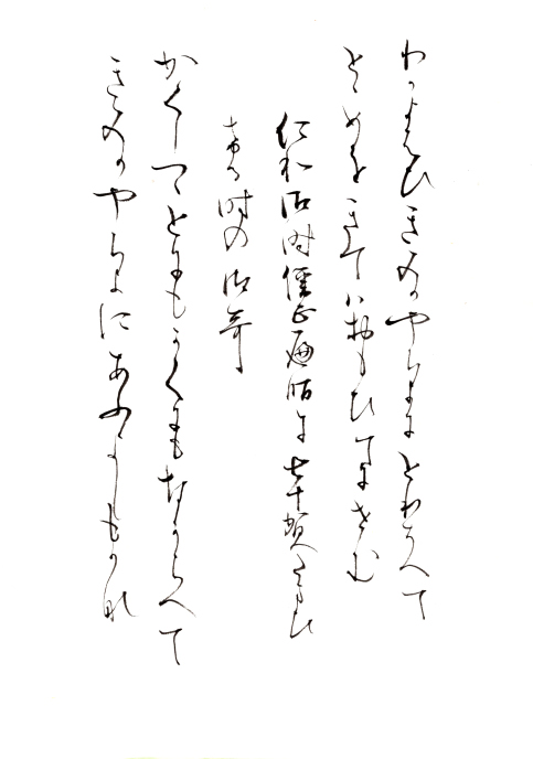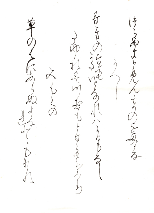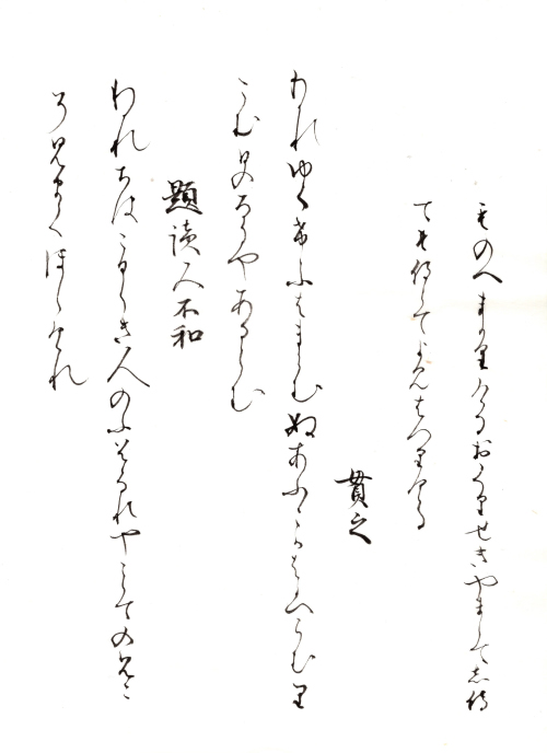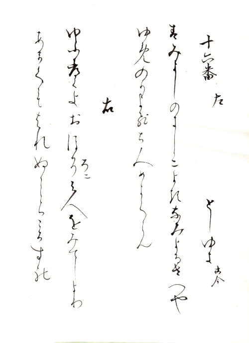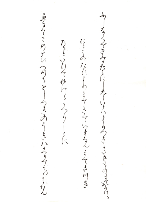 近世に入る頃、それ以前に書写された歌集などのテキスト(古筆)は、稀少なために断簡(古筆切)に分割されはじめます。この古筆切を収納、鑑賞するためのアルバムが手鑑で、手は筆跡、鑑は手本、見本の意味です。『見努世友』は、江戸時代に古筆の鑑定を専門職とした古筆家が制作した基準作で、整然とした配列と、平安時代書写の優れたかな書跡を多数含み、形式・内容ともに最高水準の手鑑です。小浜酒井家伝来。手鑑の名称は『徒然草』13段の言葉にちなみます。