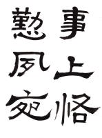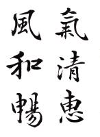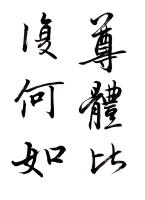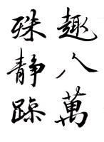 王献之が従来の型を破って新機軸を出すことに意をもちい、才腕またこれに伴うもののあったことを窺うに難くない。すなわち行草の外に一門を開き、行でもなく草でもないものを書き始めた。これが世にいうところの破体で、これは書体の名でなく、寧ろ心の赴くままに筆にまかせて、行草混淆自由に書いたものを称したと見るぺきであろう。すなわちそこに王献之の書の父にもました自由奔放と、縦横の才気とが見られるのである。
