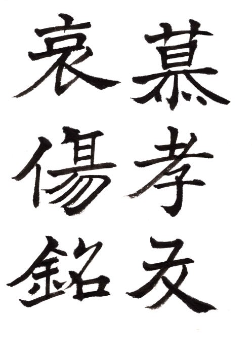 上記3帖には哀禍帖は振幅の大きさ、孔侍中帖(九月十七日帖)は骨力の強さ、憂懸帖は重厚さといった書風の違いがある。