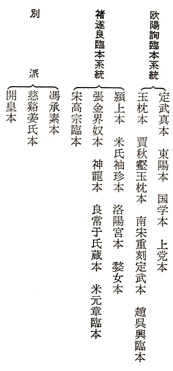 蘭亭叙の刻本の主なものとしては開皇本、落水本、游似本などを初め、文明書局の影印本など比較的容易に入手できるものもあり、その他、宋の游丞相蔵の玉泉本は商務印書館に於いて珂羅版をもって転印され、虞世南、褚遂良、馮承素三家の撫本の真蹟が中国に於いてコロタイプをもって精印され、それが又わが国においても転印されるなど、今日に於いては比較的容易にそれらの善本を入手することができるのである。
