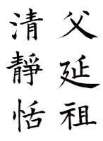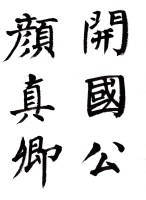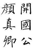 顔真卿(709-785)、姓は顔、名は真卿、字は清臣。顔昭甫の子である惟貞の第六男。母親は殷践猷の妹で、幼名は羨門子、字は清臣、別に応方と号した。歴官して魯国公に封ぜられ、よって世に顔魯公と称する。京兆長安の人。幼いころに父親を亡くし、特に母と伯母の真定(昭甫の娘)の手で養育された。