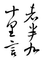 楊凝式は後周の渉の子で、官、太子太保に至った。文詞を善くし狂草を工にした。洛下に居ること10年、凡そ琳宮、仏祠の墻壁の間、題記殆んどくまなしといわれた。五代随一の大家で、宋代の書家は多くその影響を受けたと称せられるも、その作品は多く伝わらず、唯、韮花帖・歩虚詞・廬鴻草堂図跋等を見るに過ぎず、草書には夏熱帖・神仙起居帖があるのみである。