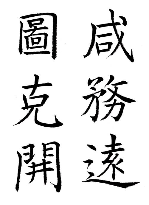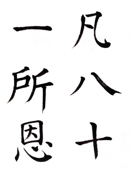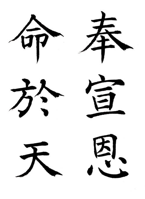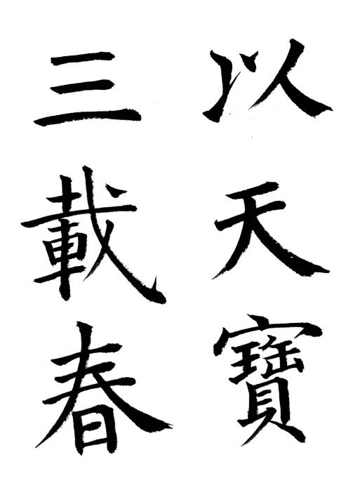 第3巻 第18章-5 藤原楚水著 省心書房八分は秦に萌芽し、後漢を以って最高峰に達し、その後は次第に降格し、王右軍の書聖を以ってするも、遂に隻字の伝われるなく、以って唐に及んだが、この時代の八分は体格愈々変化し、また漢隷の風味なく、世に之を唐隷と呼び、一種別様の趣を生じた。