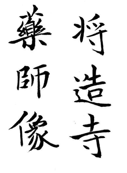 即ち現存するところの法隆寺の薬師仏造像記・釈迦仏造像記など、いずれも推古朝(593−623)のもので、その時代は中国で所謂六朝よりは稍々くだるが、なお六朝書道の風格を伝え、古雅険勁の趣を存し、本邦人の筆とは思われないものがある。
