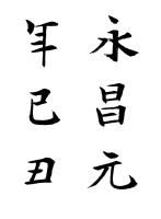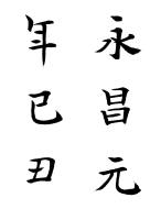 永昌は、唐の睿宗李旦の治世に使用された元号。689年。武則天による実質的な権力掌握が行われ、一般的には武則天の年号として取扱う。栃木県大田原市湯津上にある飛鳥時代の石碑。国宝に指定されている。書道史の上から、日本三古碑の1つとされる。「永昌」という元号は唐のものであるが、日本の元号は686年に天武天皇の崩御により701年の大宝まで停止されていたため、唐の元号を使用したと考えられている。(Wikipedia)