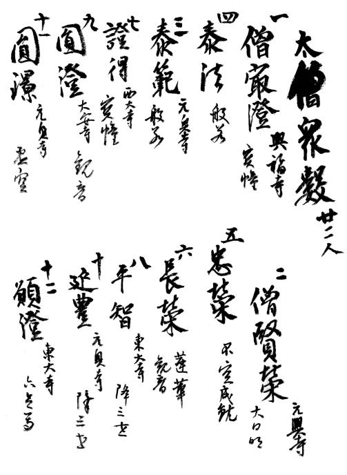 空海が密教の入門儀式である結縁灌頂を行った手控えで、弘仁3年(812)11月、12月、翌年3月の3回分の記録。結縁者の筆頭に最澄の名が記されているのも印象的である。また、最澄、空海が決別する原因のひとつとなった泰範の名が記されているのも興味深い。わが国宗教史の上で重要な古記録であるとともに、心覚えのために書き流した書であるため、空海の自由闊達な書風を知ることができる貴重な資料ともなっている。