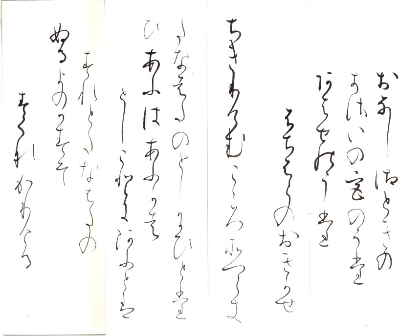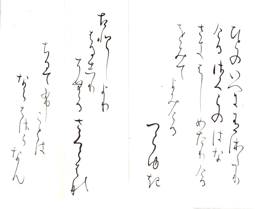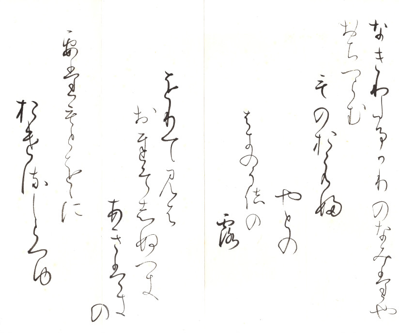 をりて見は おちそしぬへき 秋はきの 枝もたわわに おけるしらつゆ