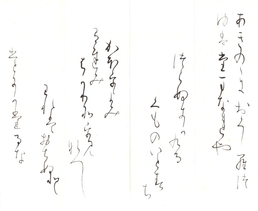 あきはきの したは色つく 今よりや ひとりある人の いねかてにする