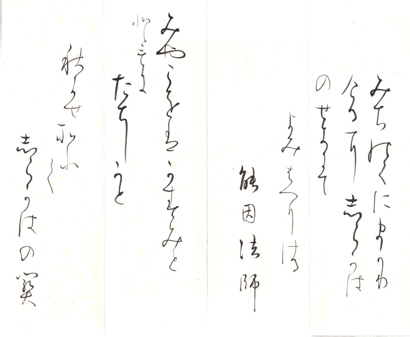 おろかなる 涙そそてに 玉はなす 我はせきあへす たきつせなれは