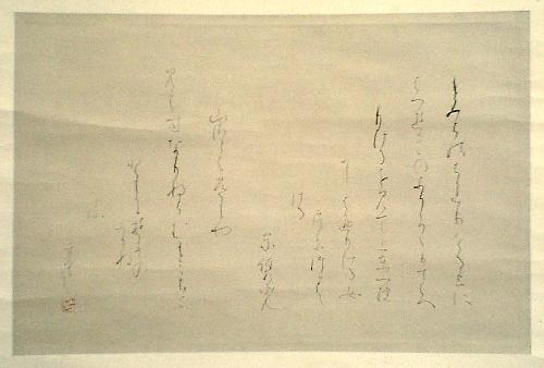 | 兵庫の人で、名は正郎、号を聖空と称し、日本芸術院賞や文化功労賞などを受賞した書家。殆ど独学で古筆仮名の研究を行い、関西の仮名書道界に絶大な影響を与えた。関西かな書道界の重鎮で、戦前は東方書道会に所属し、昭和35年日本芸術院賞受賞。日本書芸院顧問・毎日書道展名誉会員・正筆会主宰・「正筆」名誉会長。兵庫県文化賞受賞。文化功労者・日本芸術院会員・日展顧問。正四位・勲二等瑞宝章受賞。 「聖空かく」の下に、朱文草書の「正」の落款印が押されている。 推奨サイト http://www.daito.ac.jp/~oukodou/gallery/pic-777.html |