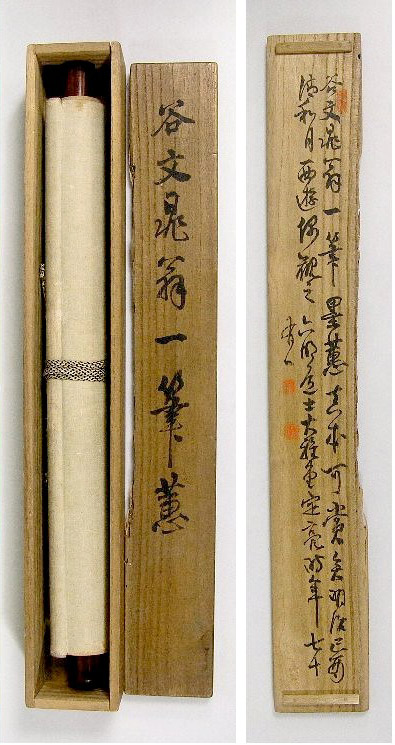 江戸南画の大成者。名は正安。はじめ号は文朝・師陵、後に文晁とし字も兼ねた。 通称は文五郎または直右衛門。別号には写山楼・画学斎・ 無二・一恕。薙髪して法眼位に叙されてからは文阿弥と号した。江戸下谷根岸の生れ。 「文晁」の下に、朱文の「文晁」の落款印が押されている。 推奨サイト http://ja.wikipedia.org/wiki/%E8%B0%B7%E6%96%87%E6%99%81 http://www.edoshoga.jp/buncho.html http://db.am.geidai.ac.jp/person.cgi?id=182 http://www.spmoa.shizuoka.shizuoka.jp/collection/item/J_147_836_J.html http://www.syukado.jp/sakusya/cat152/tani_buncho.html http://jp.encarta.msn.com/encyclopedia_1161531820/content.html http://fine-vn.com/cat_33/ent_46.html http://www.mmag.gsn.ed.jp/collection/kohoan/buncho.htm http://db.am.geidai.ac.jp/person.cgi?id=182;start=21 http://homepage2.nifty.com/kakejikukai/buncho.htm