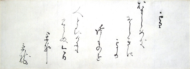 | 江戸後期の歌人・歌学者。初名は、純徳・景徳。通称は銀之助・真十郎・式部・長門介。号は桂園・東塢亭・梅月堂・観鶩亭・臨淵社・万水楼・一月楼。香川景柄の養子となり、離縁後も香川を名乗っている。清水定固に和歌を学び、上京して徳大寺家に出仕した。養父景柄を通じて小沢蘆庵に私淑し、その後「しらべの説」を提唱して独自の歌風を創始し桂園派と称されるようになった。 署名のみで落款印は押していない。 推奨サイト http://ja.wikipedia.org/wiki/%E9%A6%99%E5%B7%9D%E6%99%AF%E6%A8%B9 http://kanko.pref.tottori.jp/site/page/kanko/guide1/like/bungaku/kagawakageki/mobile.html http://www.asahi-net.or.jp/~sg2h-ymst/yamatouta/sennin/kageki.html http://www.city.ikeda.osaka.jp/sisetu/rekisi/waka/wkeijyu.htm |