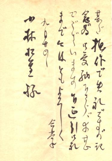 | 清水市西久保に生まれる。名は敏雄、字は士欽、枝翠・翠々居と号した。大正10年(1921)に上京し、深川に書塾を開いた。漢字を松本芳翠先生に、仮名を高塚竹堂先生に、篆書を安達オ邨先生に師事した。が、大正12年の関東大震災で静岡に転居する。 昭和12年、高松宮殿下の御前揮毫の栄を賜った。昭和15年の静岡大災で焼失し、麻布桜田町に転居すが、昭和20年の戦災で三度焼失。後、静岡に転居した。 この間、昭和15年から19年、東京都庁・日本勧業銀行・大東亜省に書道講座を開き講師となる。昭和22年から37年までの15年間にわたり清水女子高校の教諭を務めた。 一方、南画を高橋雲亭先生・大橋廉堂先生・日下部道壽先生に師事し、山水・四君子を得意とした。また井上舒庵先生・仁賀保香城先生に作詩の指導を受けた。 (財)書海社理事・審査員、毎日展審査員、静岡県書道連盟顧問、翠々会・翠紅会会長を務めた。 この墨竹は右の手紙と共に頂戴したもの。 |