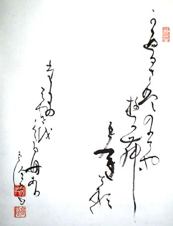 | 愛知県熱田出身。はじめ芳太郎と称し、高蔭と号したが、のちに高蔭を本名とした。幼時より書を好み、はじめ恒川宕谷につき、長じて岩谷一六に学んだ。のち仮名の研究にも志し、唐の古蹟を研究し合わせて日本土古代の書風も研究し、晋唐の書を和様体に加えた剛健な独創的なかな書道を創始する。國學院大学の講師を勤め、泰東書道院の学術顧問並びに特別会員として、長く活躍した。 また和歌を小出粲に学び、御歌所にも出仕した。著に『模範女子習字帖』四冊・『高蔭百首』・『高蔭千首』・『日本書道研究』等がある。 「高蔭畫も」の上に、白文の「松園主人」、朱文の「高蔭」の落款印が押されている。 推奨サイト http://www.daito.ac.jp/~oukodou/gallery/pic-595.html http://www.dap.ndl.go.jp/home/modules/dasearch/dirsearch.php?id=oai%3Akindai.ndl.go.jp%3A40071177-00000&cc=07_02_08&keyword=&and_or=AND http://www.kosho.or.jp/servlet/bookselect.Kihon_result |