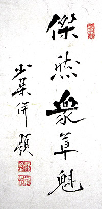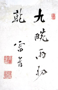 | 亀井雷首(三苫源吾) 寛政元年(1789)生〜嘉永五年(1852)歿 筑前国怡土郡井原村に生れた。諱は復、字は広竜、号は雷首山人。文化13年源吾27歳の時、昭陽の娘少琹と結婚。文政7年(1824)、三苫は昭陽の求めで亀井姓を名乗り分家した。源吾は医業のかたわら儒学を子弟に教え、少琹はこれを補佐した。朝鮮の書に影響を受けたシャープな書体と、力強い打ち込みの大胆な図柄の絵を描き、独自の世界を開拓している。 |