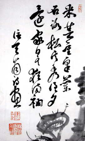 松下霊芝図 釆芸(=ばらばらに植える) 皐(さつき)蘭 重なる 石路(=石ころの多い道) 松雲秀で 得々(=わざわざ) 夕に家に還える 日○ 猶お袖に満つ |